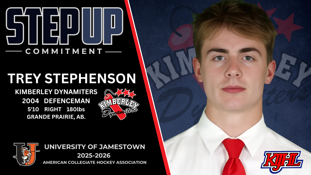 Trey Stephenson of the Kimberley Dynamiters has committed to play for the University of Jamestown Jimmies for the 2025-26 season.